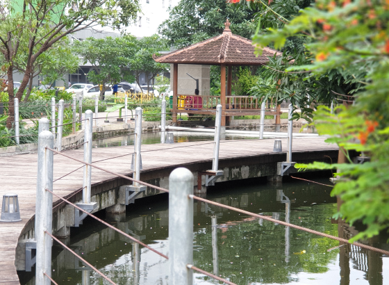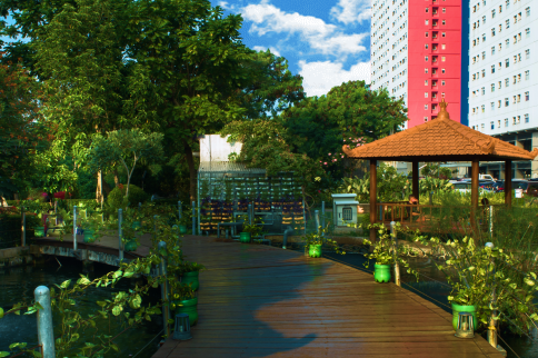 Area Jungle Pond di Apartemen Green Pramuka City adalah destinasi yang menarik dan menyenangkan bagi seluruh keluarga. Dikelilingi oleh elemen-elemen alam dan desain yang menarik, area ini menawarkan pengalaman bermain yang seru dan mendebarkan bagi anak-anak, sementara orang tua dapat menikmati suasana yang nyaman dan aman.